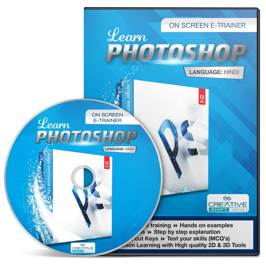 CreativeShift, the all new pioneers in the E-Educational field presents you the ultimate package of Photoshop CS5 (Hindi) On Screen E Trainer, Auto Runs (No installation required) on computer & laptop, Basic to advance (Every concept covered), Hands on examples, Repeatability- you can self-learn the content of your choice as many times as you want; Self-learning with a very high quality audio-visual tutorials, MS Office Short cut Keys, Step by step explanation, Test your skills on application (MCQ's), Application shortcut keys, Next Generation Learning with quality 2D & 3D Tools, with this all, new loaded product, you can now educate yourself, at home, or at your convenience. For bulk products quantities (i. e. institutional requirements), kindly contact us by a separate email on same.